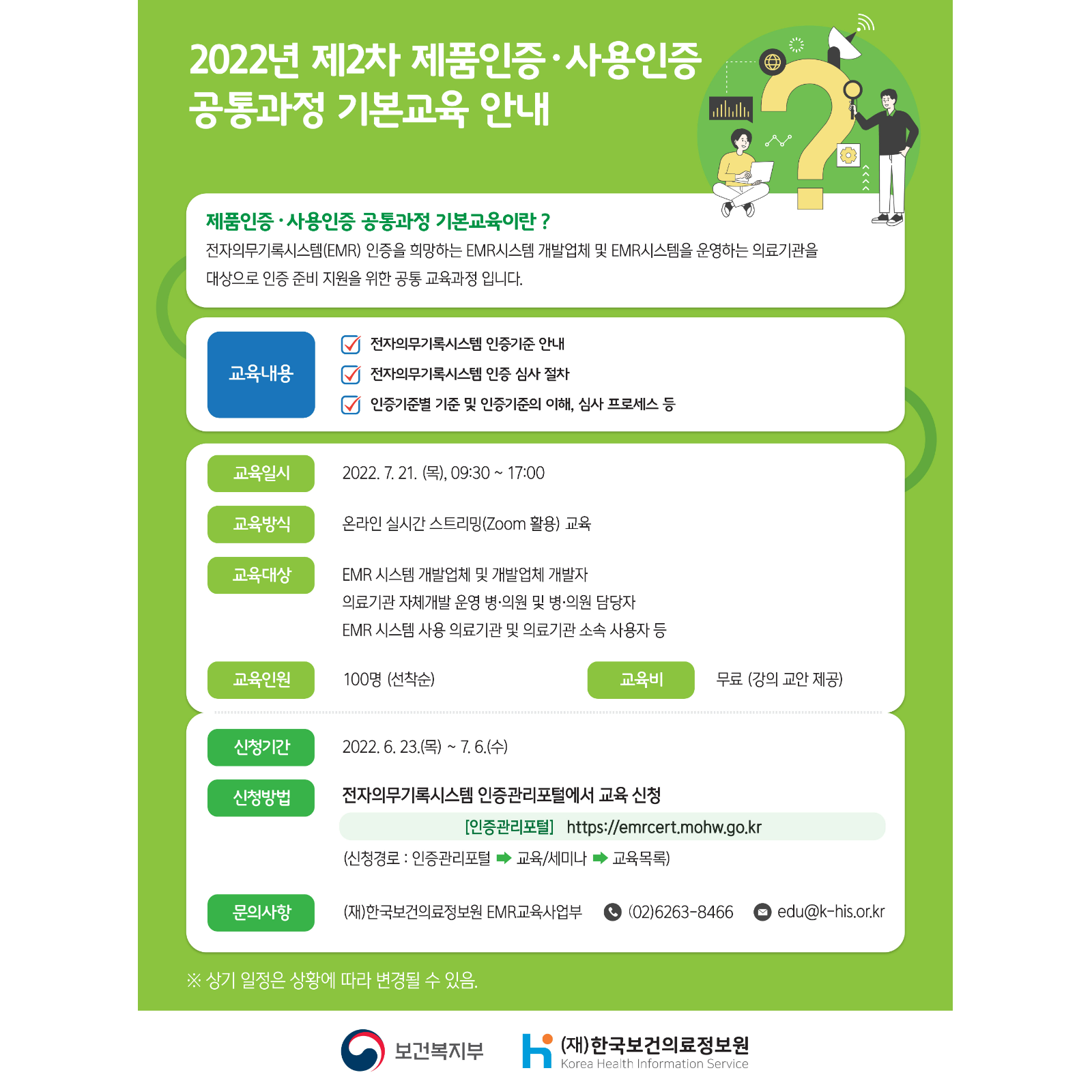 전자의무기록 시스템(EMR) 인증을 희망하는 EMR시스템 개발업체 및 EMR시스템을 운영하는 의료기관을 대상으로
